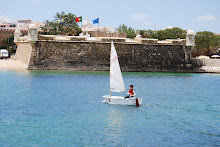 Depois de um mini-treino com o Pai, a caminho do campo de regata, o Manel tirou um 13º e um 9º (eram 30 e tal) e lá ia respondendo aos conselhos dos "treinadores de barco"!